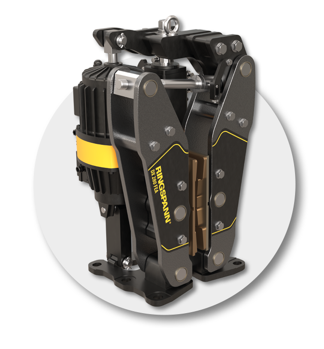 | Over the years, the size of container vessels have constantly been growing. This development has led to a growth of container cranes as well. Besides the increase in total height and boom outreach, the hoisting speed and maximum load under the spreader has grown, too. The result is an increase of peak torques in the bearings and the crane’s steel structure, when doing a category 0-emergency stop. | RINGSPANN has developed a complete range of braking solutions, that all follow one goal: To minimize the impact of peak torques and backlash to extend the lifetime of the gearbox. |